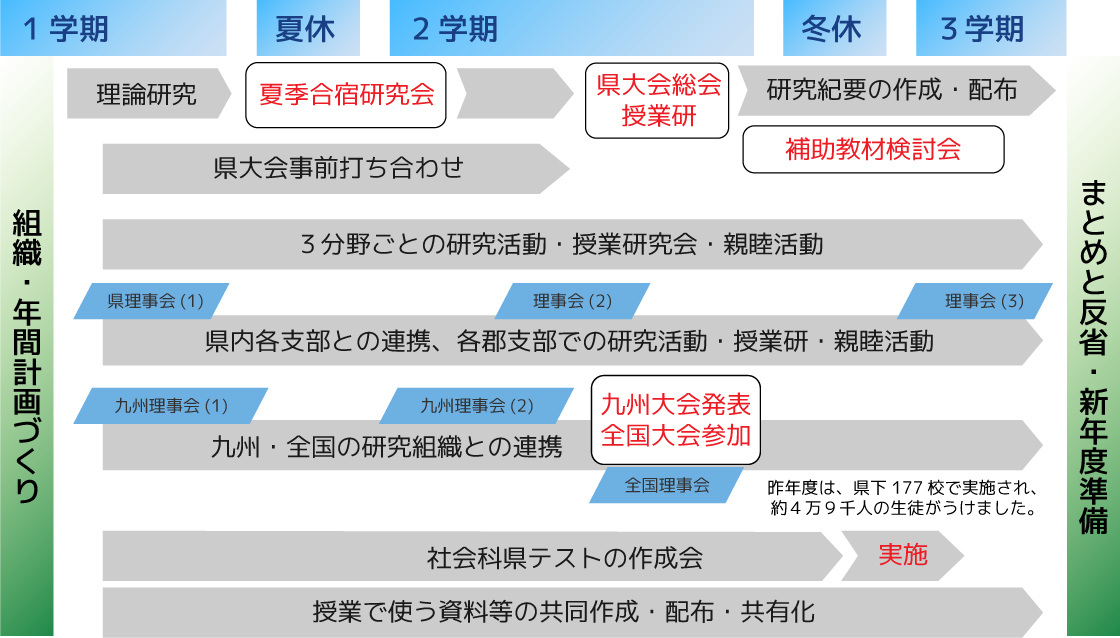 毎年 11 月には県大会が開かれ、 授業力を磨きたい先生方が集まります。いっしょに勉強しませんか!